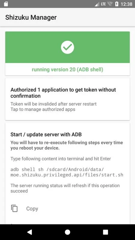 يعرض مدير التطبيقات التطبيقات التي تتطلب الوصول، ويتيح لك قبول أو رفض الوصول في أي وقت. كما يمكّن المستخدمين من التحقق من حالة الخدمة، واستخدام استدعاءات Binder لجعلها أسرع بكثير من تحليل النصوص. مع ذلك، قد يكون الأمر محفوفًا بالمخاطر، إذ أن أي نقرة خاطئة قد تُسبب عدم استقرار النظام، أو حتى تعطيل هاتفك. لذا، تأكد من قدرتك على إدارته، واقرأ الوثائق المتوفرة على واجهة المستخدم، وافهم الشروط، وتجنب النقرات العشوائية.